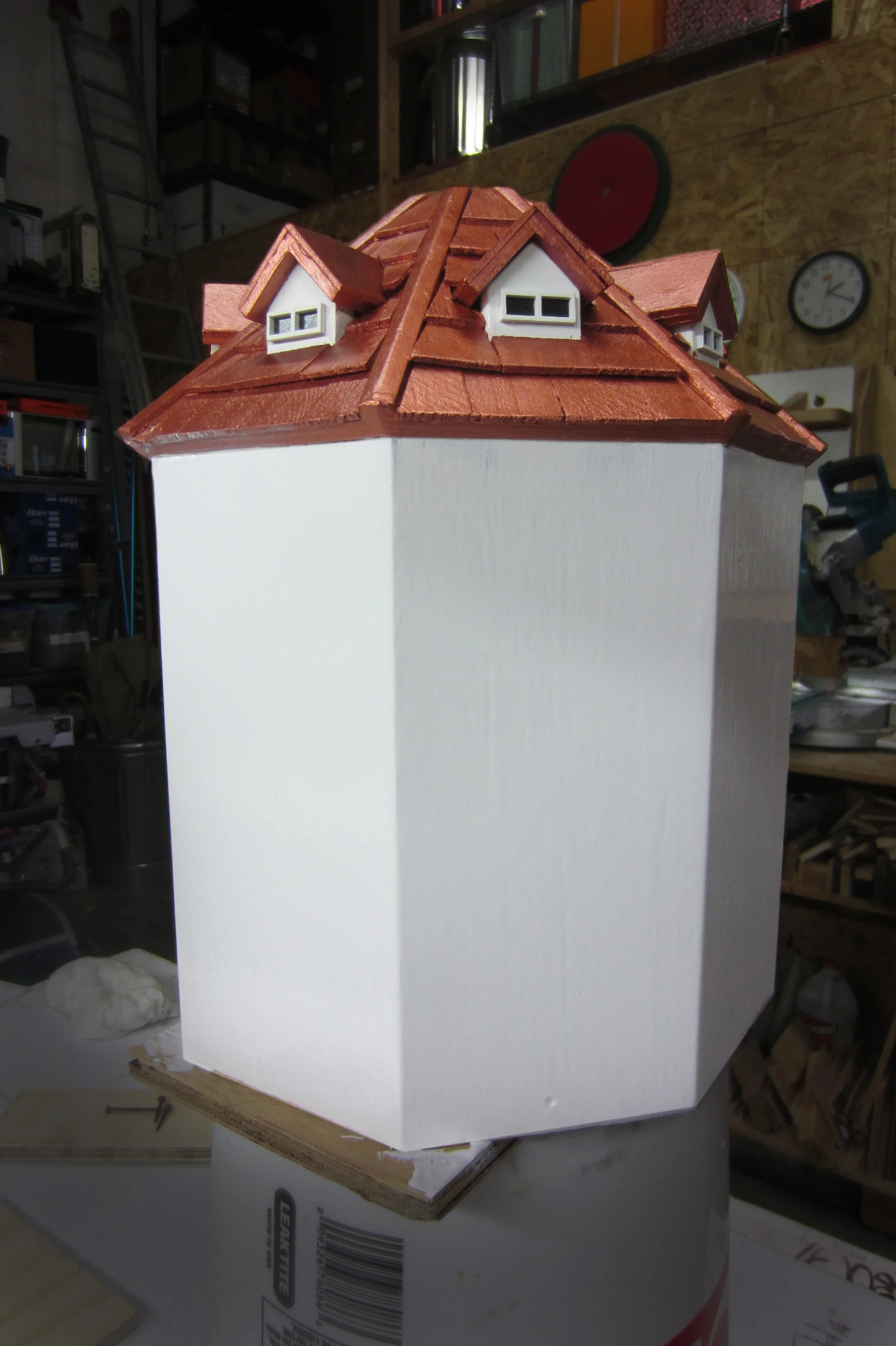 The paint on main body of the house along with the copper paint for the roof both dry, the exterior details can go on.