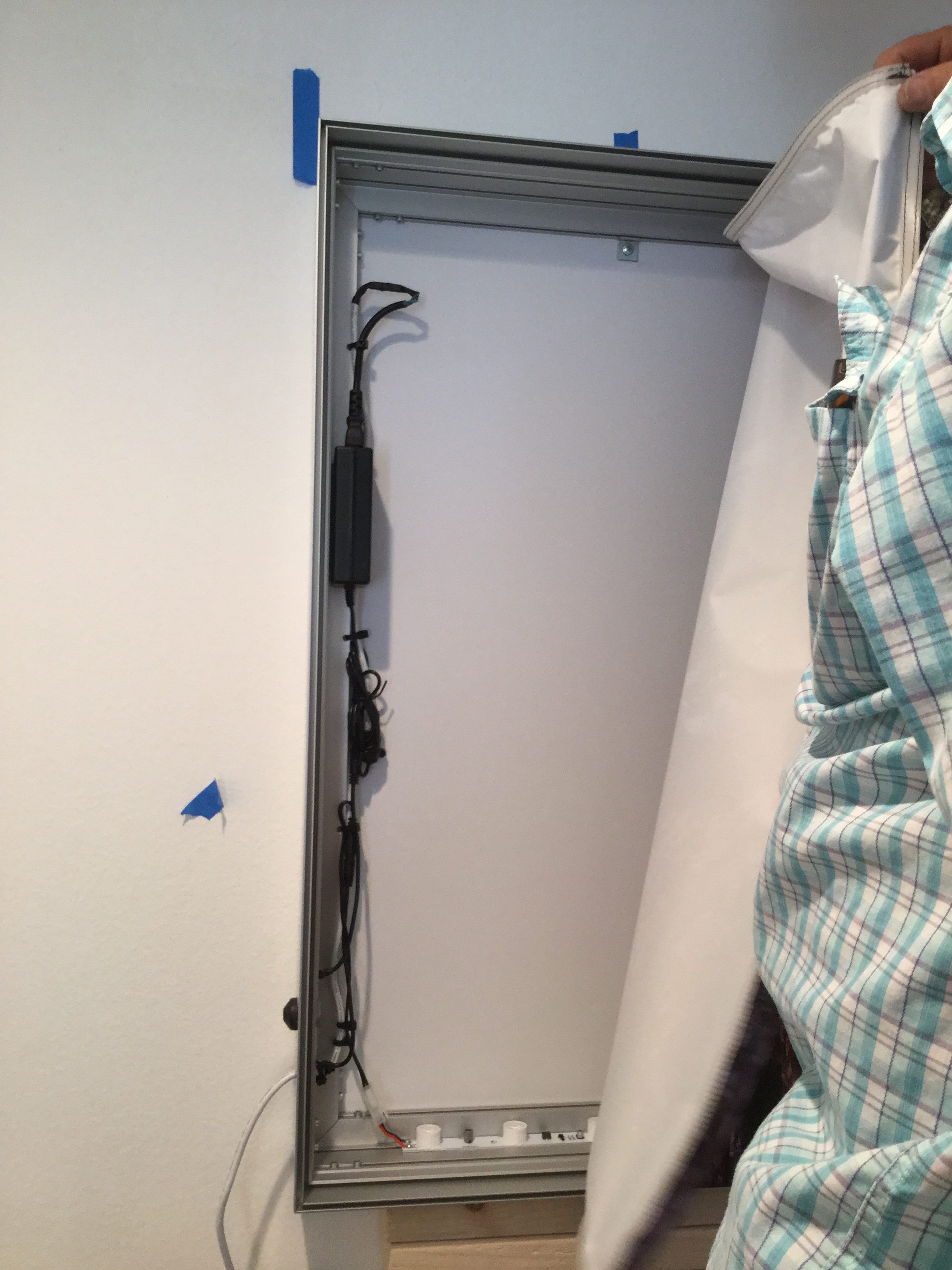 Inside workings of the LEDs within the light box frame mount.