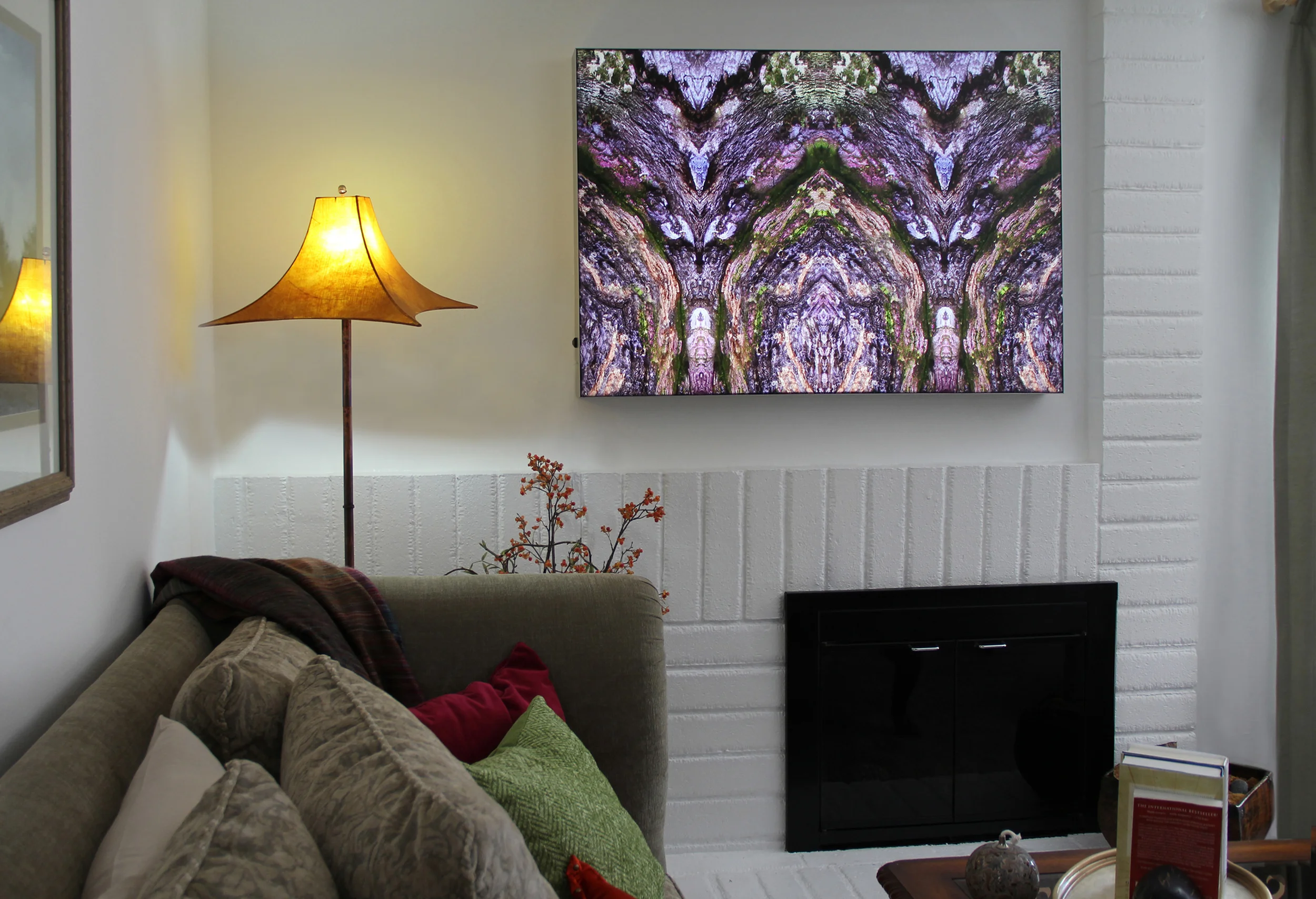After much research I found a graphics company that could print my artwork and then weld it to canvas. From there, a sleek frame would be built to mount the canvas. Within that frame were rows of LED lights, controllable by a dimmer switch to the side.